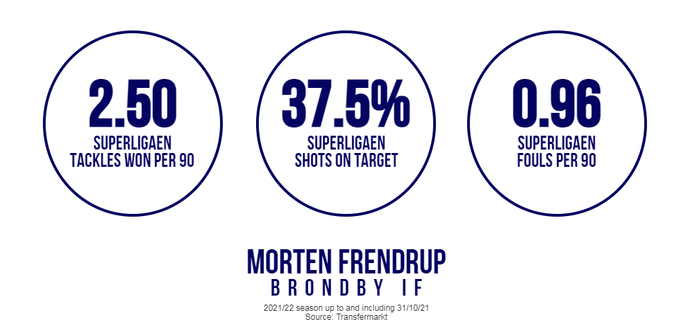 If he leaves Denmark in the next couple of transfer windows Frendrup will be asked by his next club to play with patience, composure and intelligence. Brondby aren’t having the season they would have wanted in 2021/22 but Frendrup individually is emerging as a fine midfielder with those three characteristics in abundance.